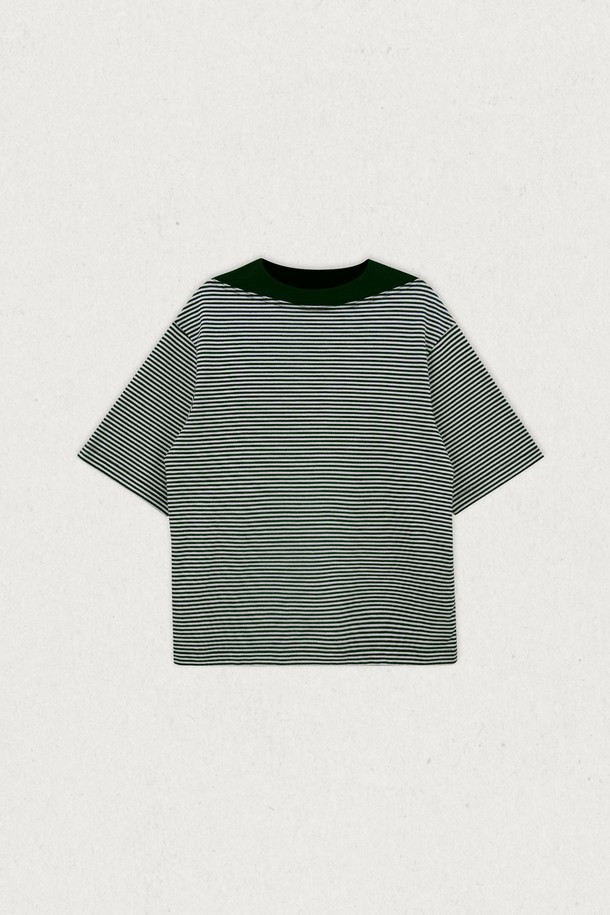 스트라이프 보트넥 반팔티