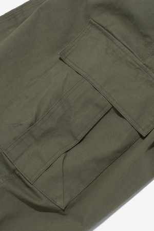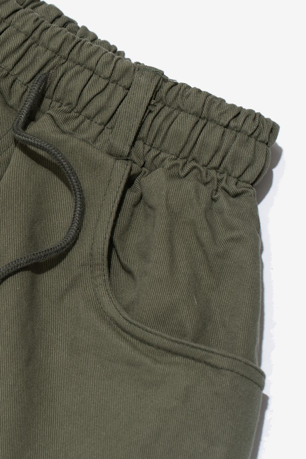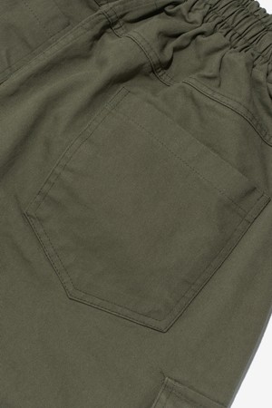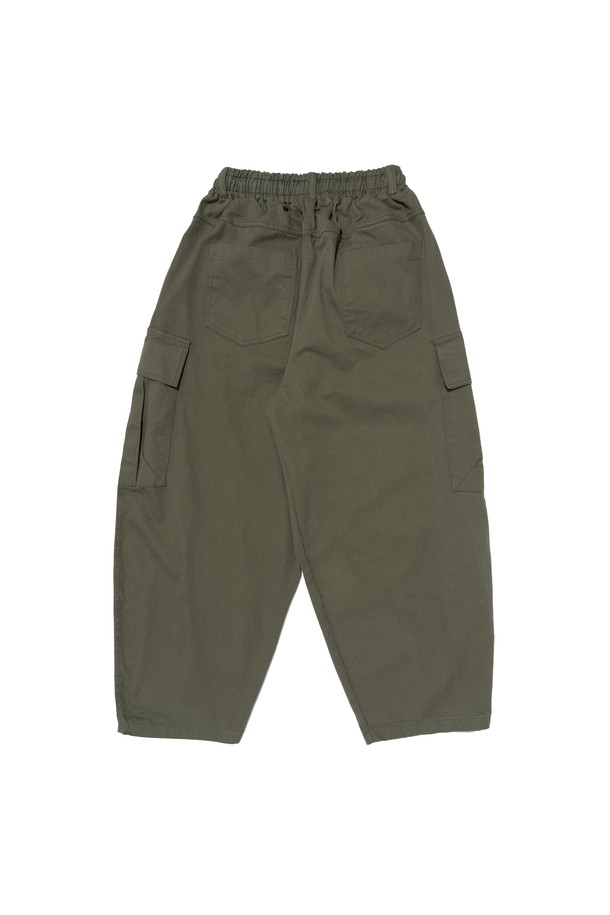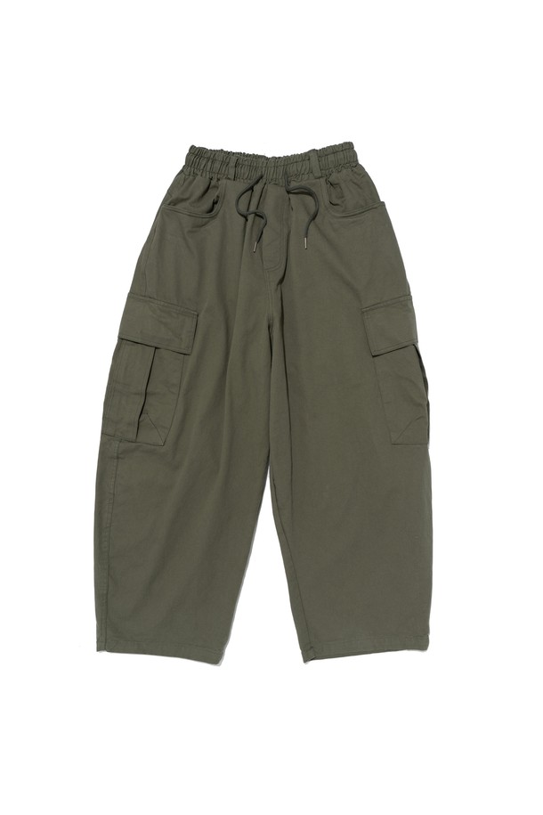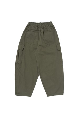 WASHED COTTON CURVED BIG CARGO PANTS (KHAKI)