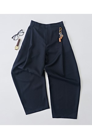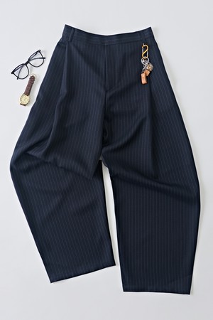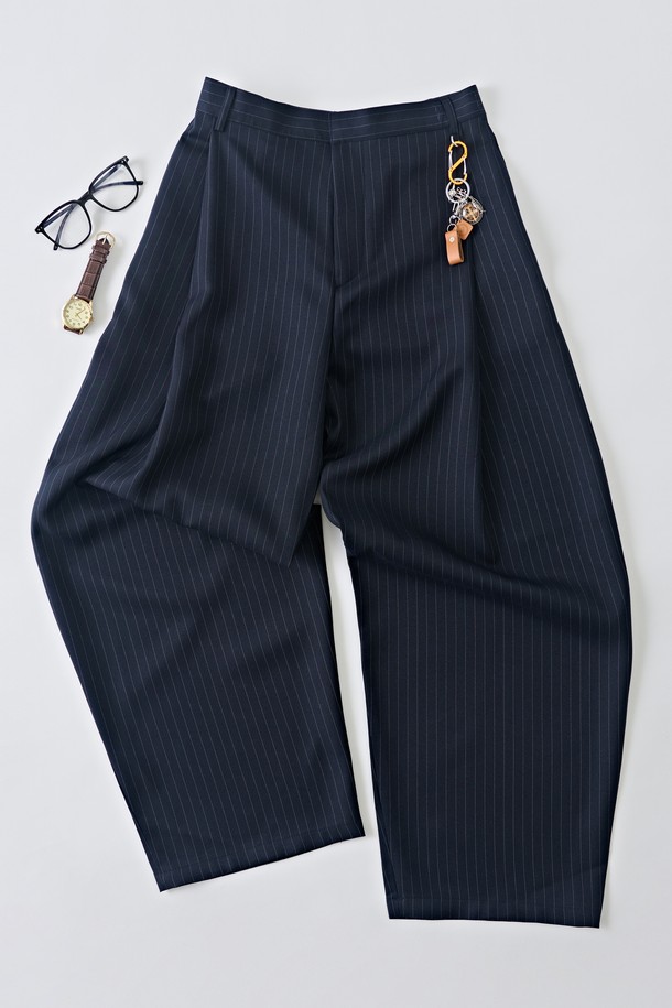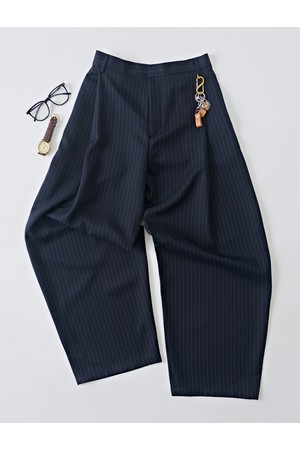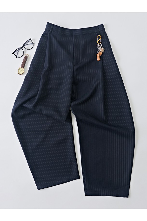 스트라이프 뒷밴딩 와이드 슬랙스 (네이비)