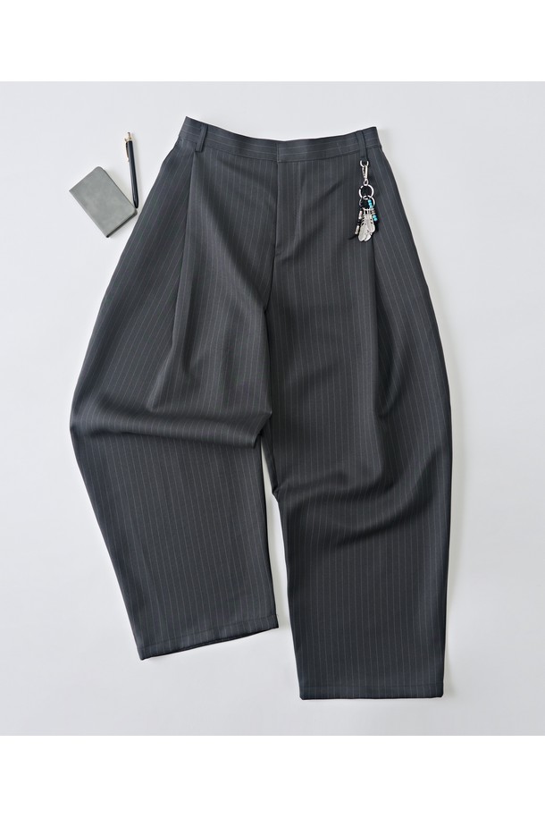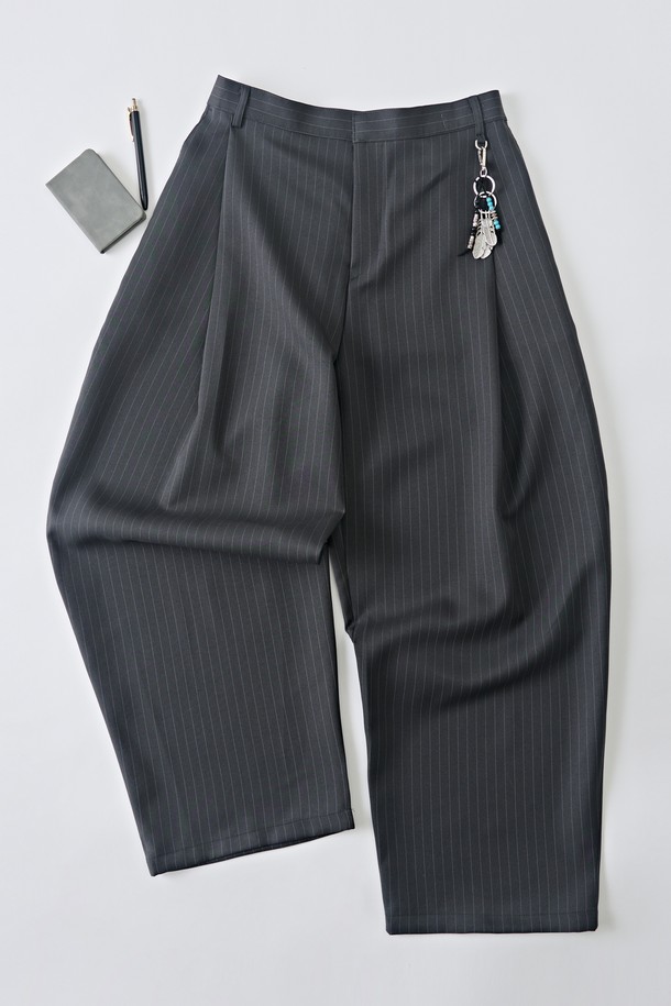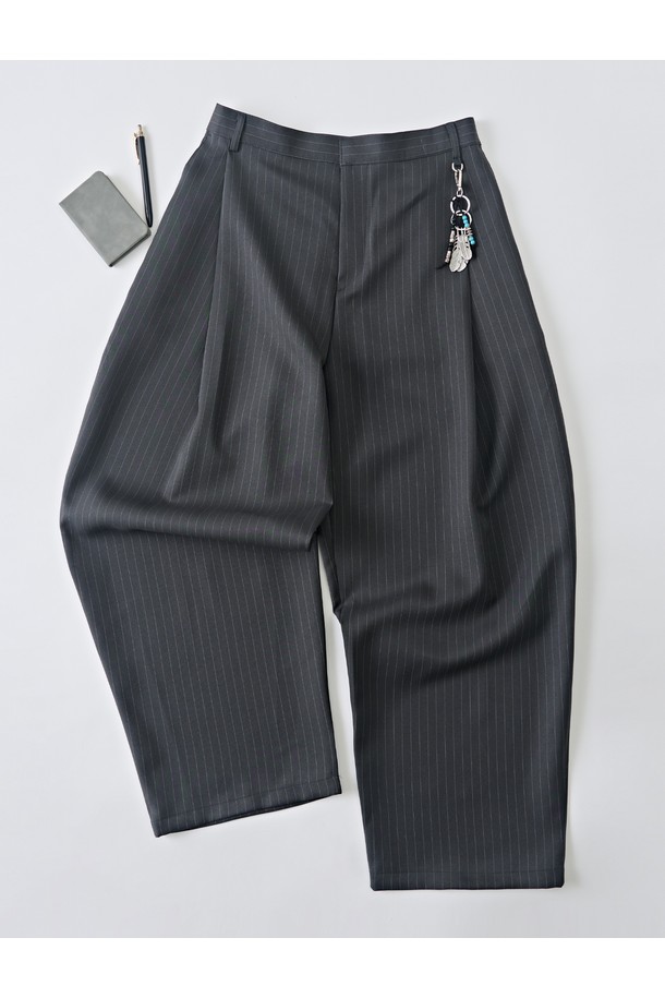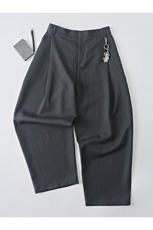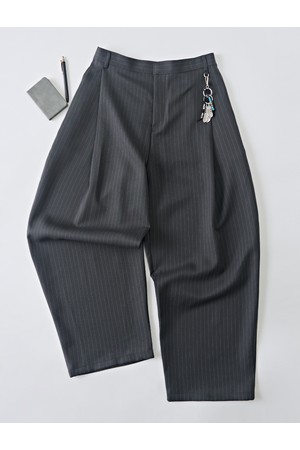 스트라이프 뒷밴딩 와이드 슬랙스 (차콜)
