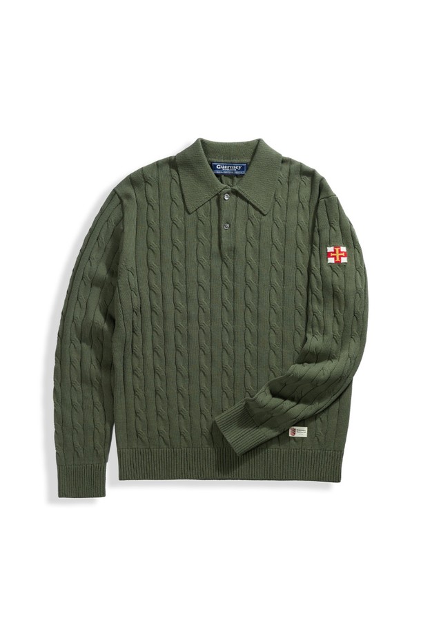 코튼 케이블 긴팔 카라 니트 - 헌터 그린