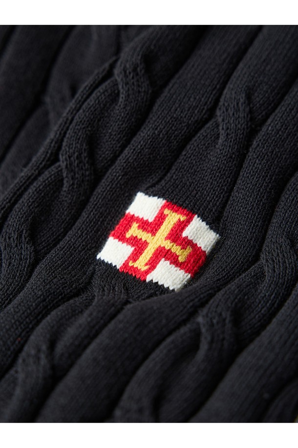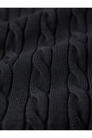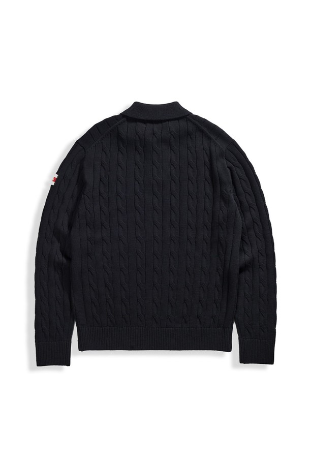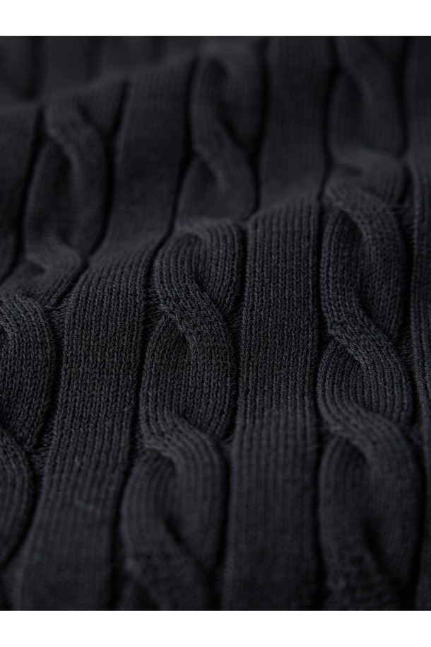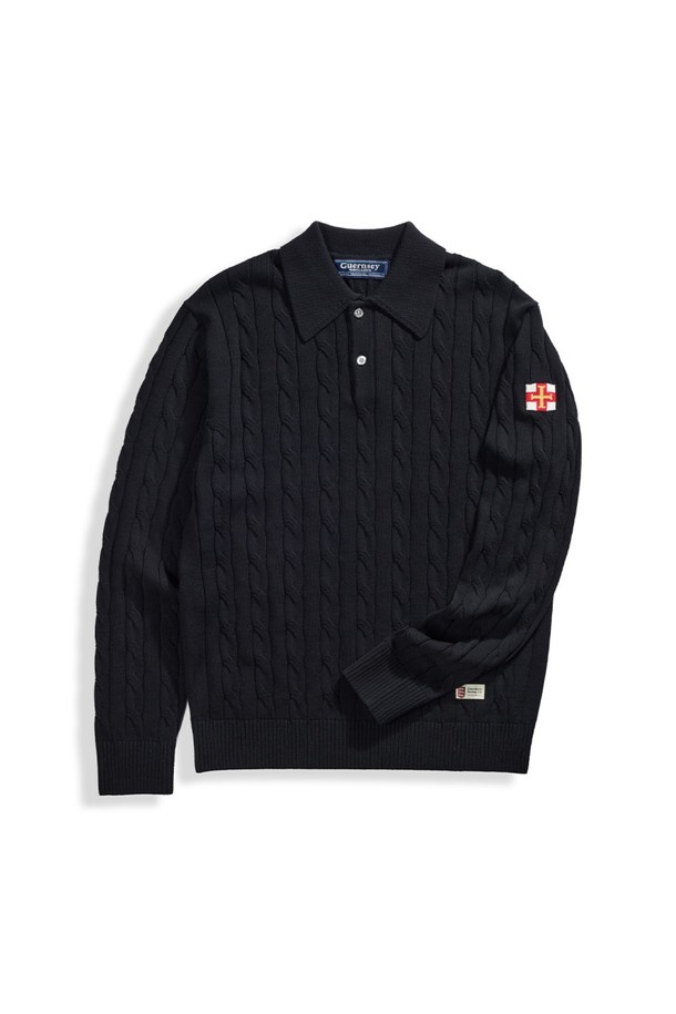 코튼 케이블 긴팔 카라 니트 - 블랙