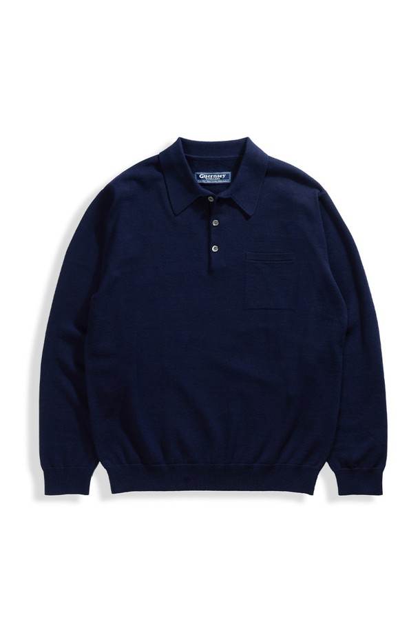 캐시미어 블렌드 포켓 카라 니트 - 네이비