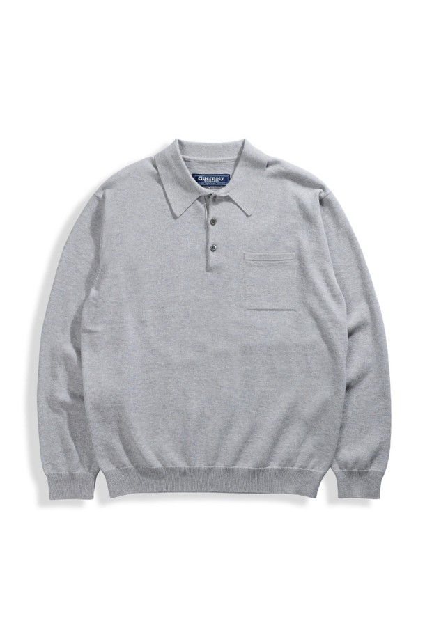 캐시미어 블렌드 포켓 카라 니트 - 멜란지 그레이