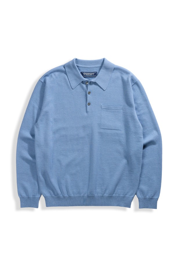 캐시미어 블렌드 포켓 카라 니트 - 더스티 블루