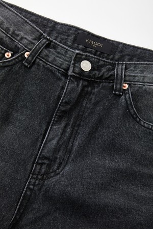 봄가을 세미와이드 블랙 워싱 데님 팬츠 DJN113