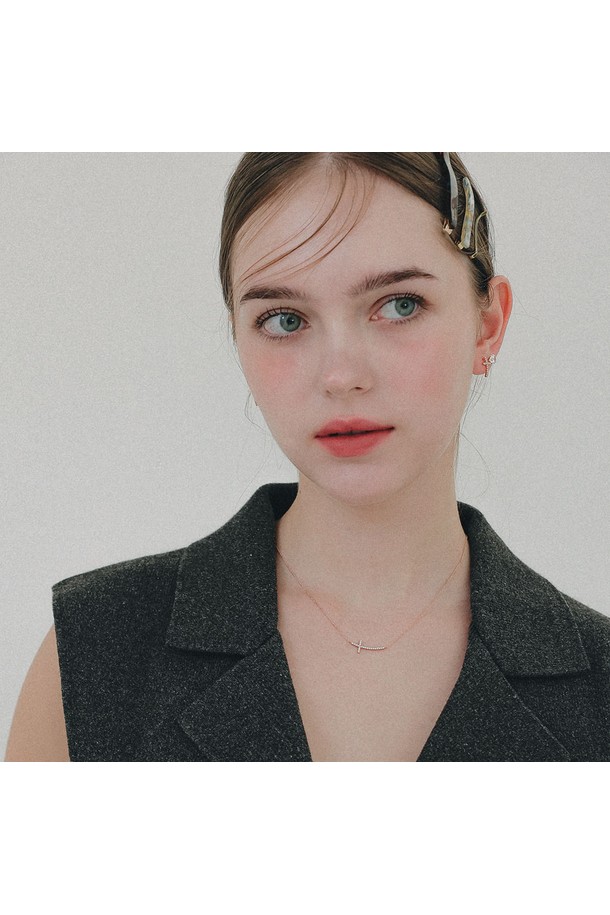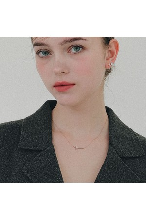 로즈골드 크로스 큐빅 실버 목걸이 N0525r
