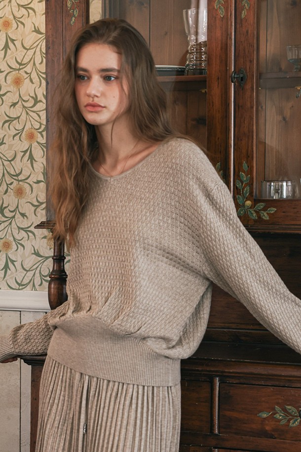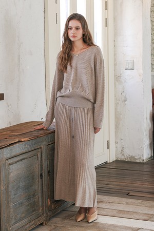 Elegant knit top and skirt set_BIEGE