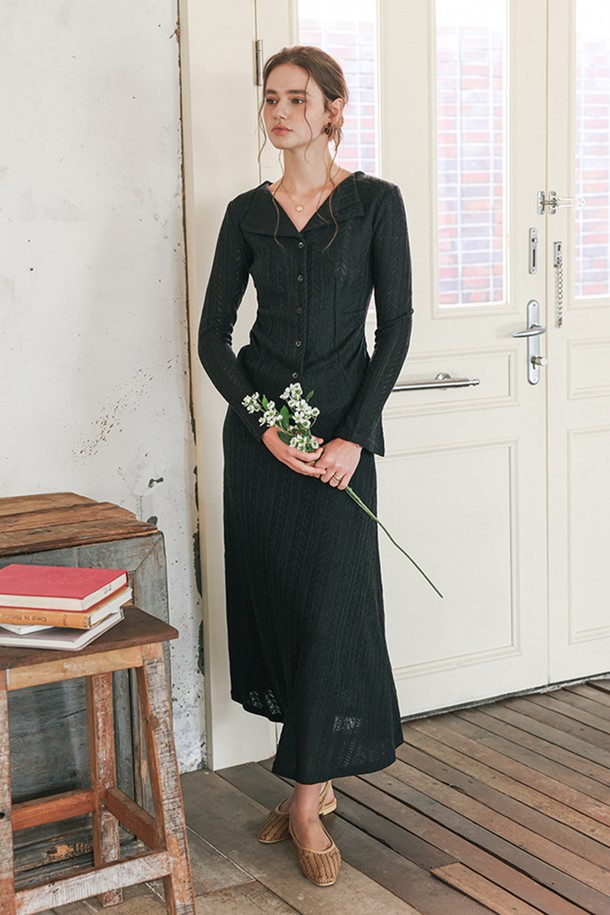 Refined knit cardigan and skirt set_2color