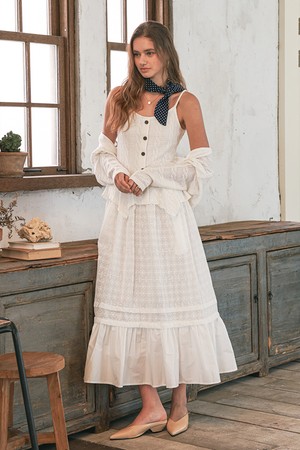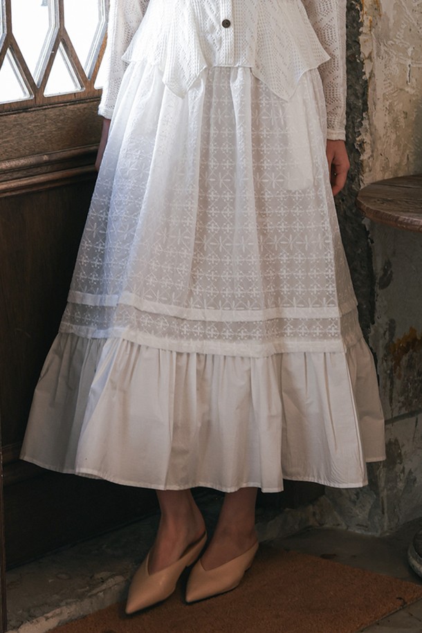 Lace tiered skirt_WHITE