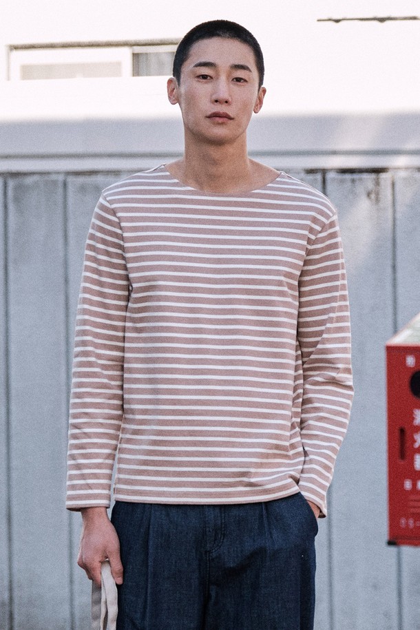 [DIEMS by STCO]보트넥 스트라이프 긴팔 티셔츠_베이지 (세미오버핏)_LTSWA62NTD