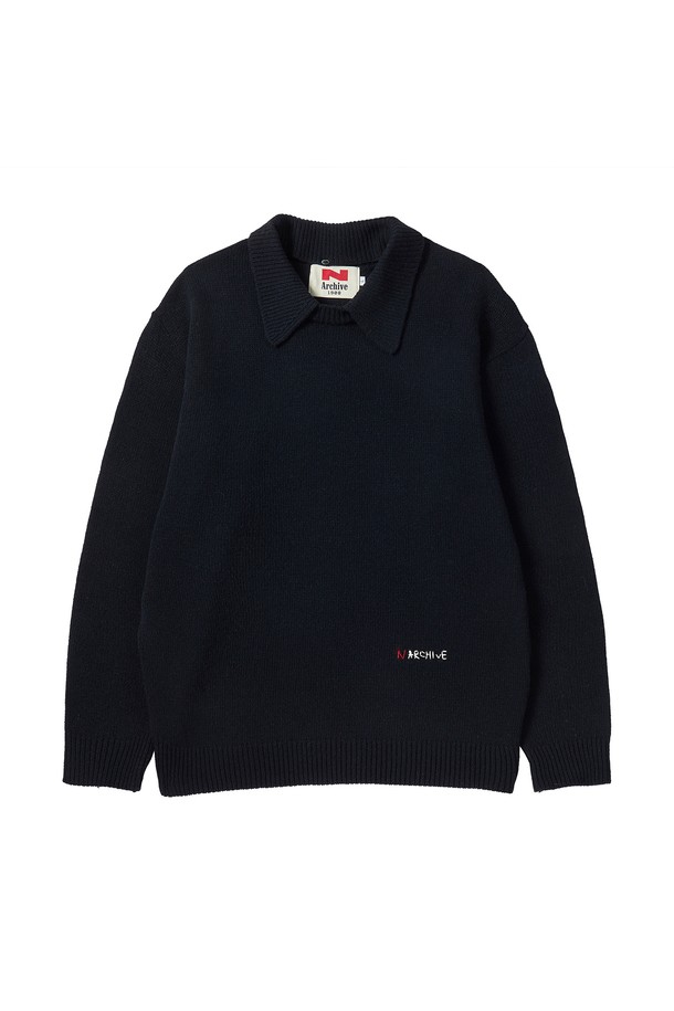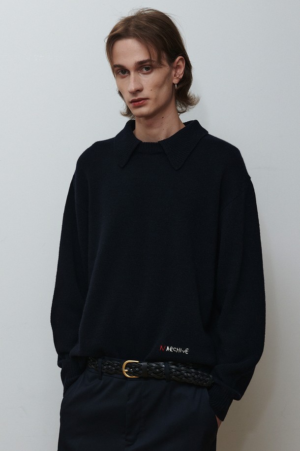 모듈러 카라 울 니트 네이비