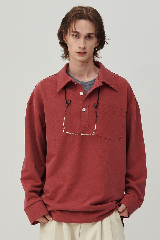 90's 아카이브 피케 스웨트 셔츠 워시드 레드