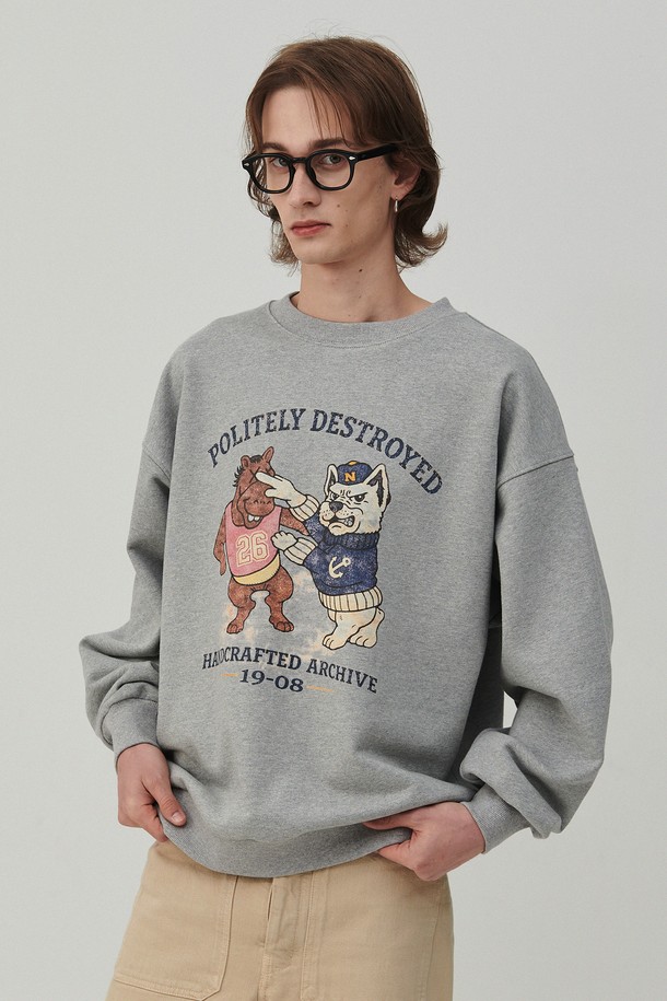 빈티지 아카이브 그래픽 스웨트 셔츠 그레이