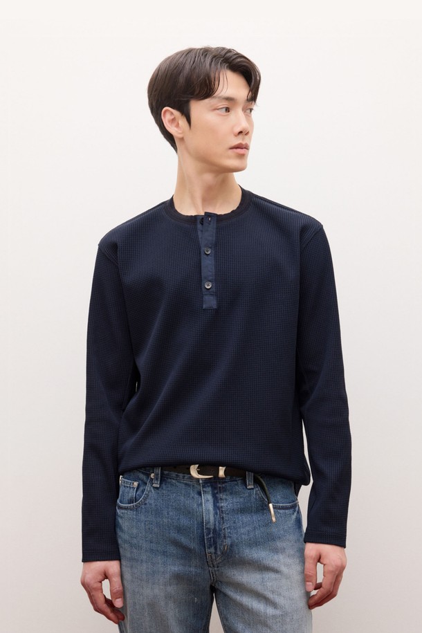 와플 헨리넥 티셔츠 - 다크네이비(JNTS6A201N3)