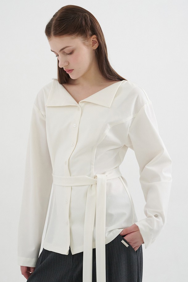 이솔라 스트랩 오픈 카라 블라우스