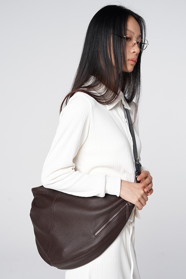 듀얼 2단 조절 스트랩 하프문 소가죽 백
