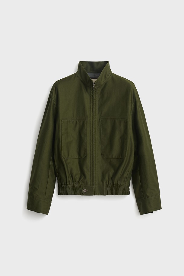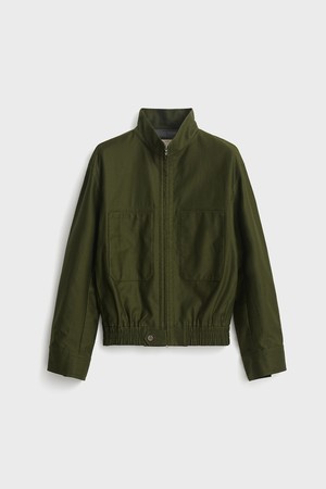 Cotton High Neck Blouson_Deep Green