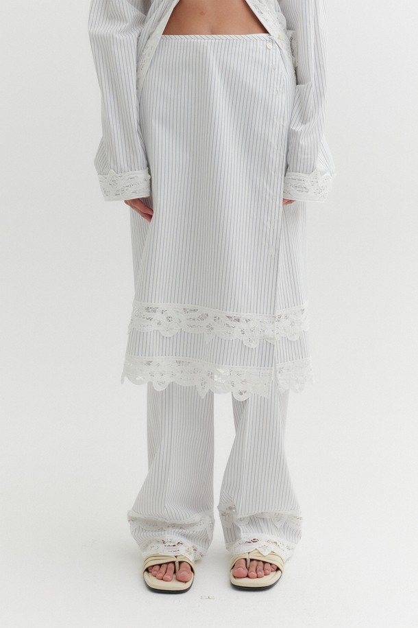 레이스 트림 스커트 - 아이보리