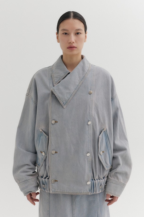 언발란스 카라 점퍼 - 핑크 워시드