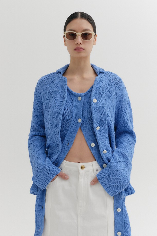 텍스처 니트 가디건 - 스카이 블루