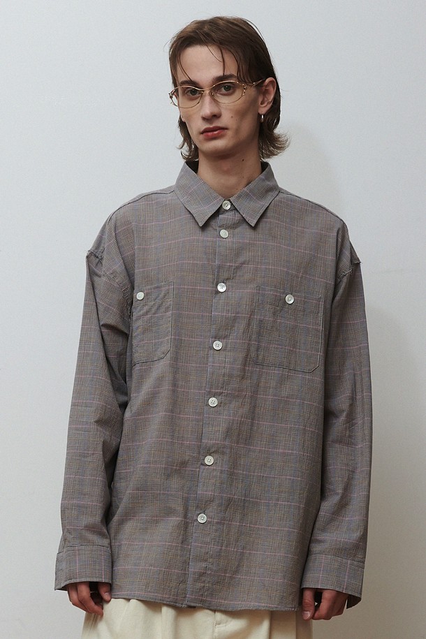 크래프티드 체크 포켓 셔츠 브라운