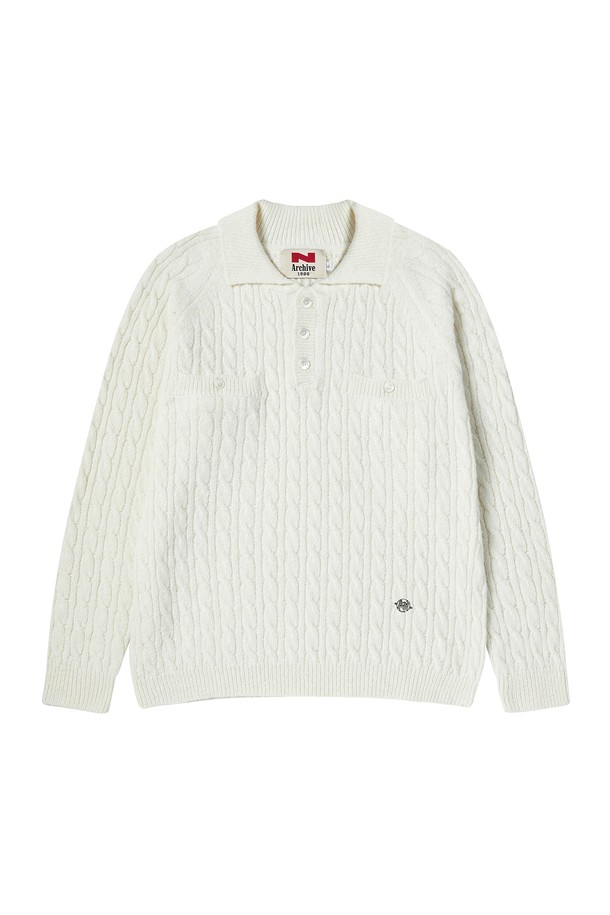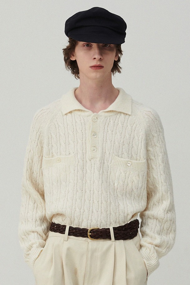 에어리 알파카 케이블 폴로 니트 아이보리