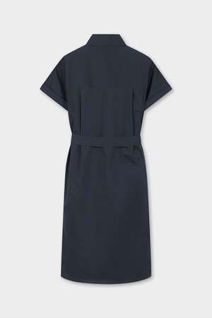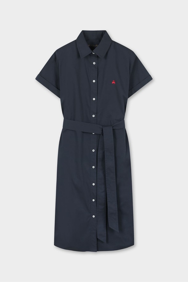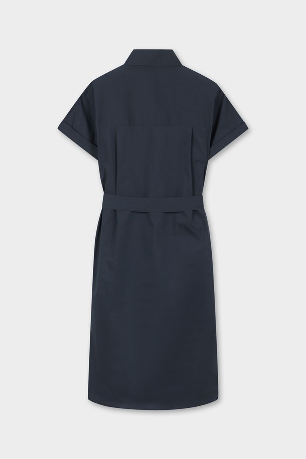 [여성] 벨티드 반팔 셔츠 원피스 (네이비) (BBDZWBG201)