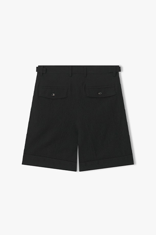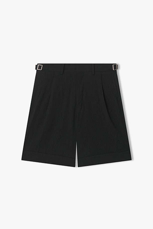 [26SS] LMM23780 블랙 주름지 원턱 카브라 하프 팬츠
