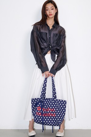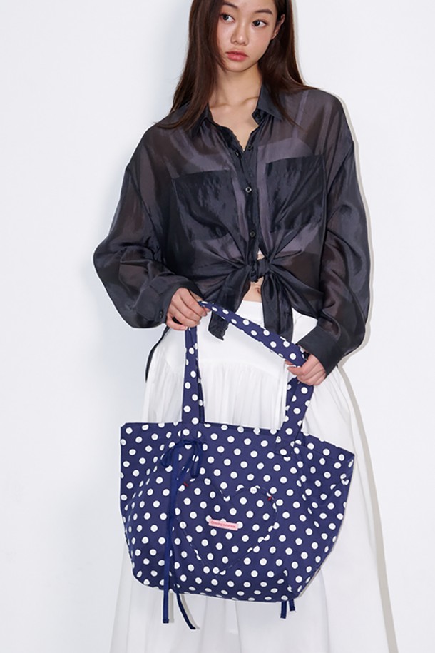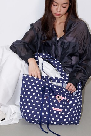 Heart Pocket Big Eco Bag Dot Navy