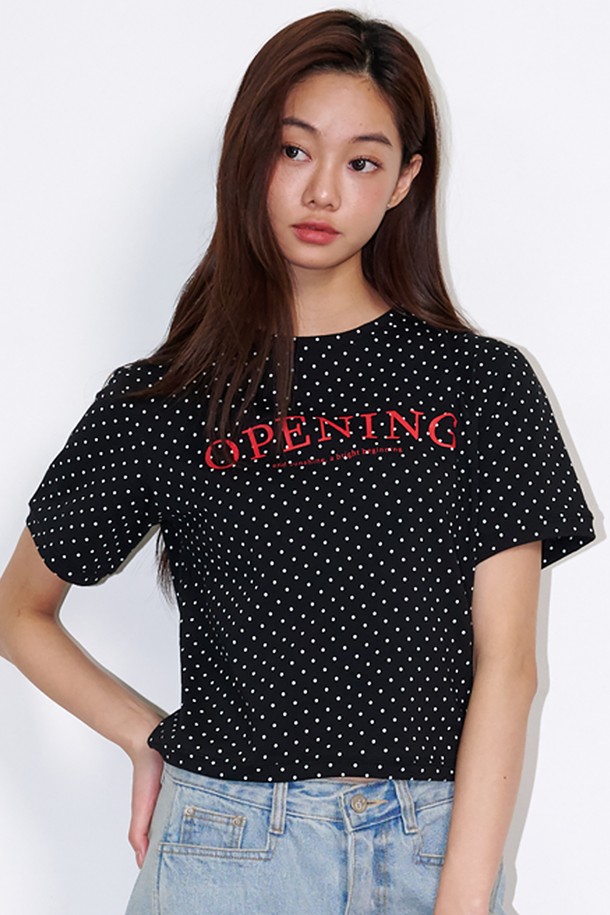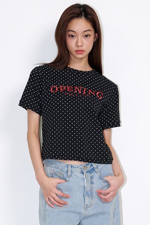 Dot Short-sleeved Logo Cropped T-shirt Black