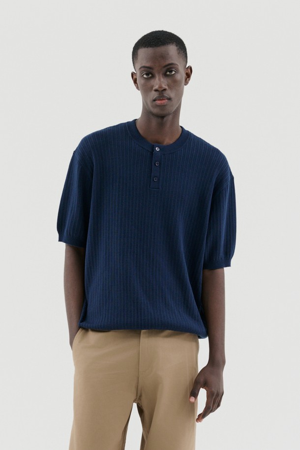 버튼다운 헨리넥 반팔니트