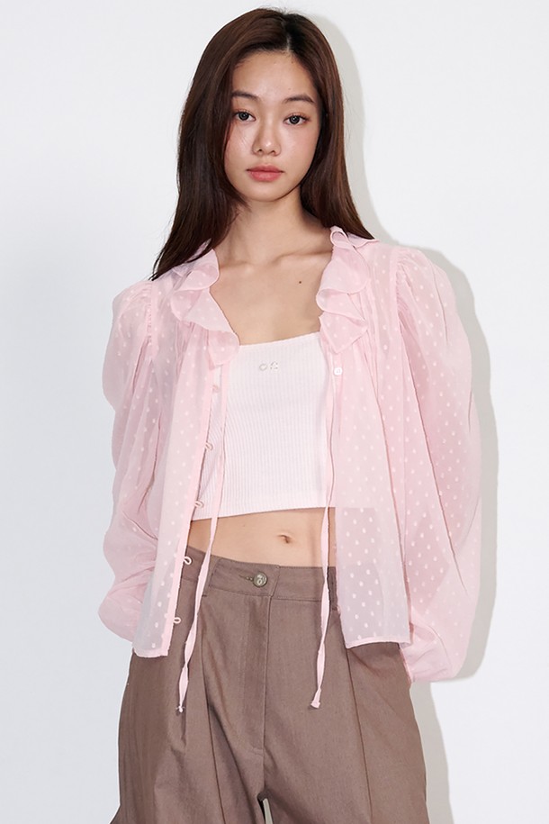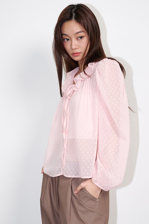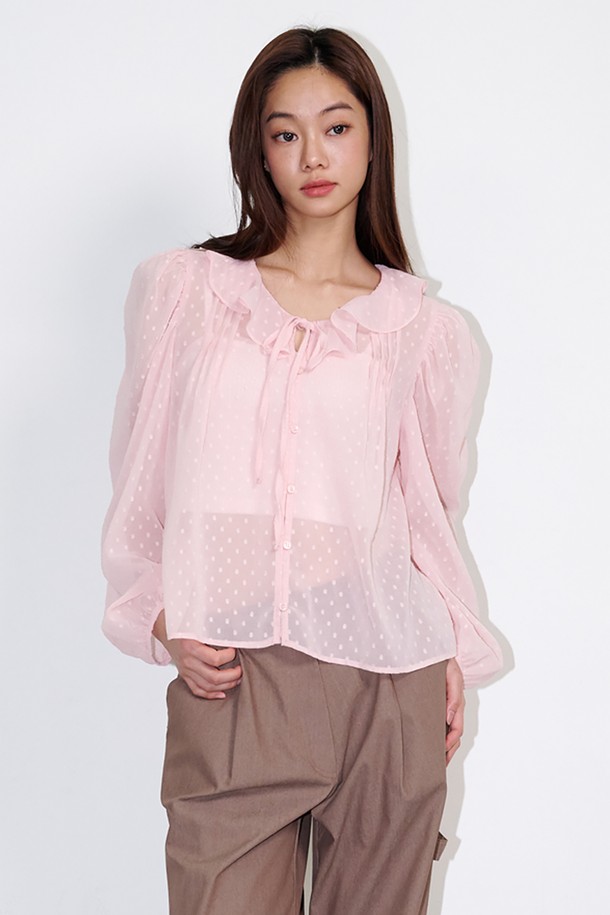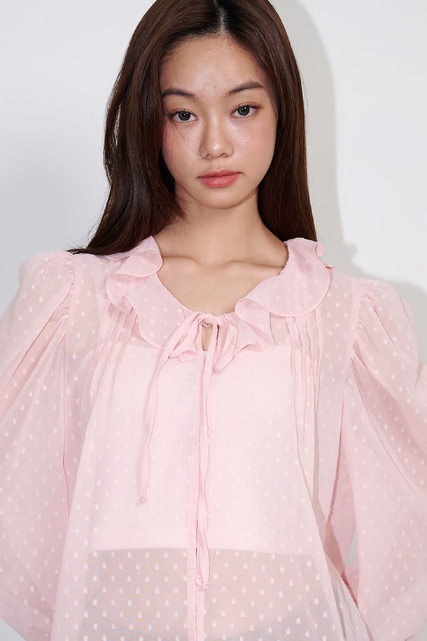 Ruffled See-through Dot Blouse Pink