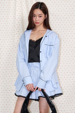 Striped lace pintuck shorts Blue