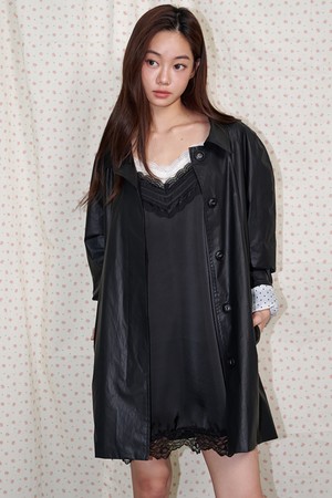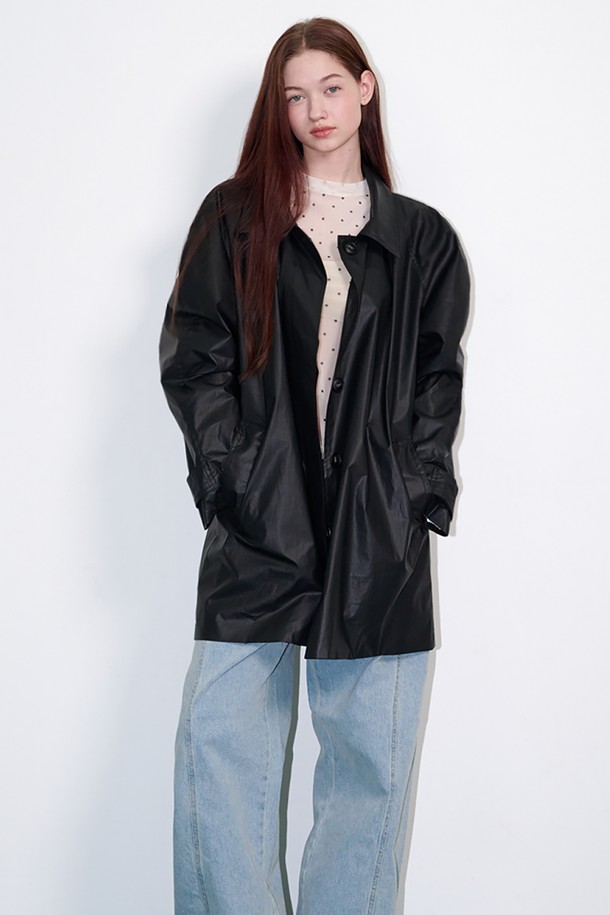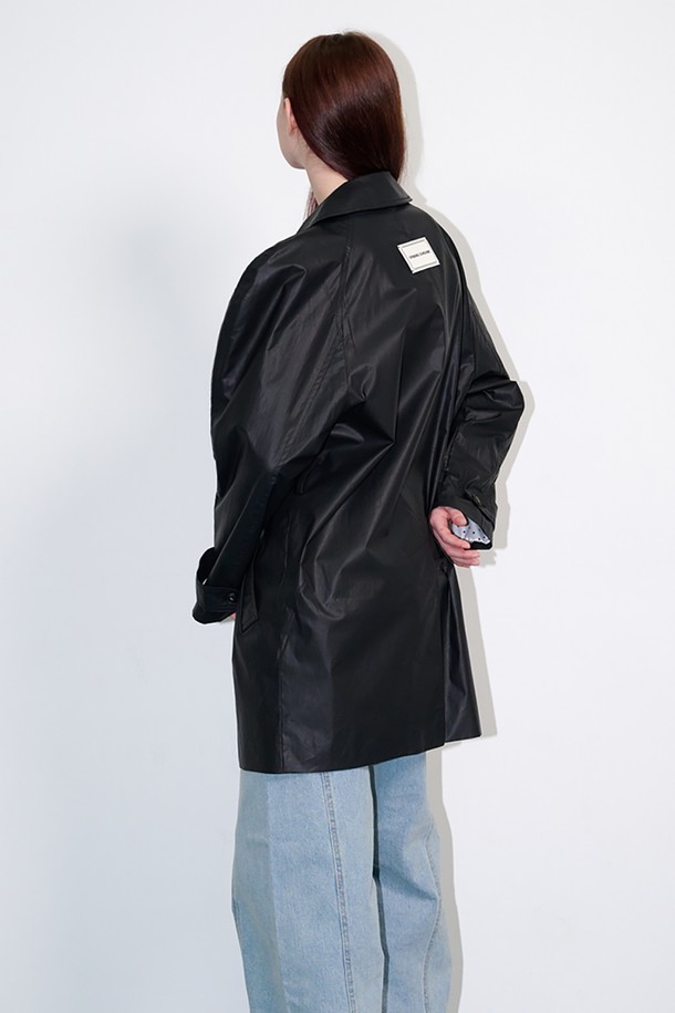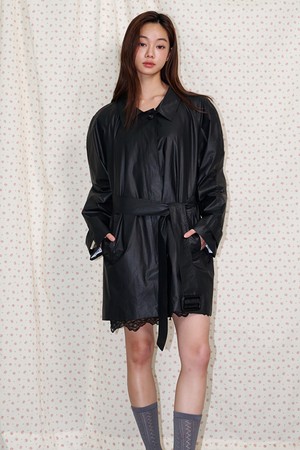 Belted Half Trench Coat Shiny black