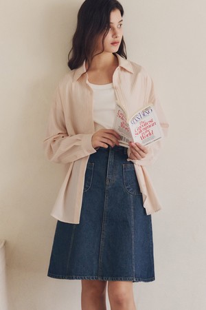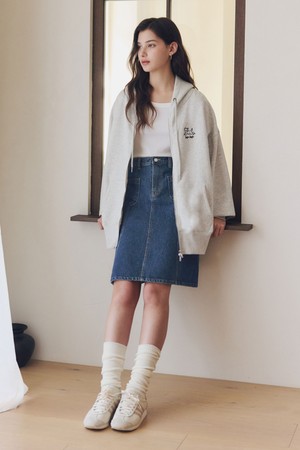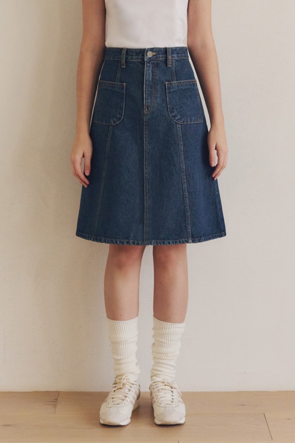 미디 플레어 데님 스커트 / 인디고
