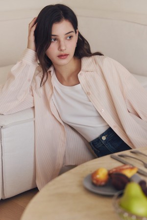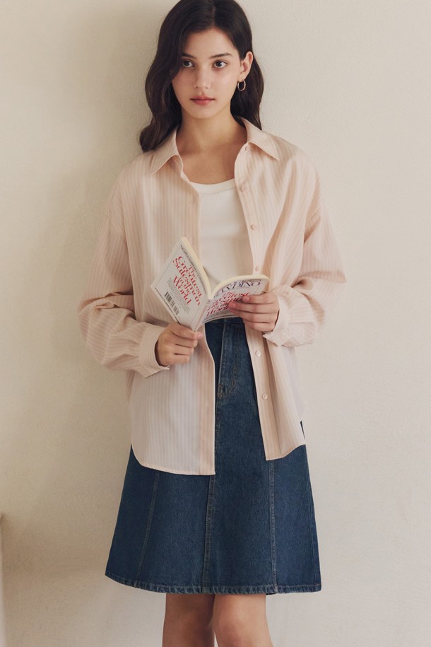 샌드 스트라이프 셔츠 / 핑크 베이지