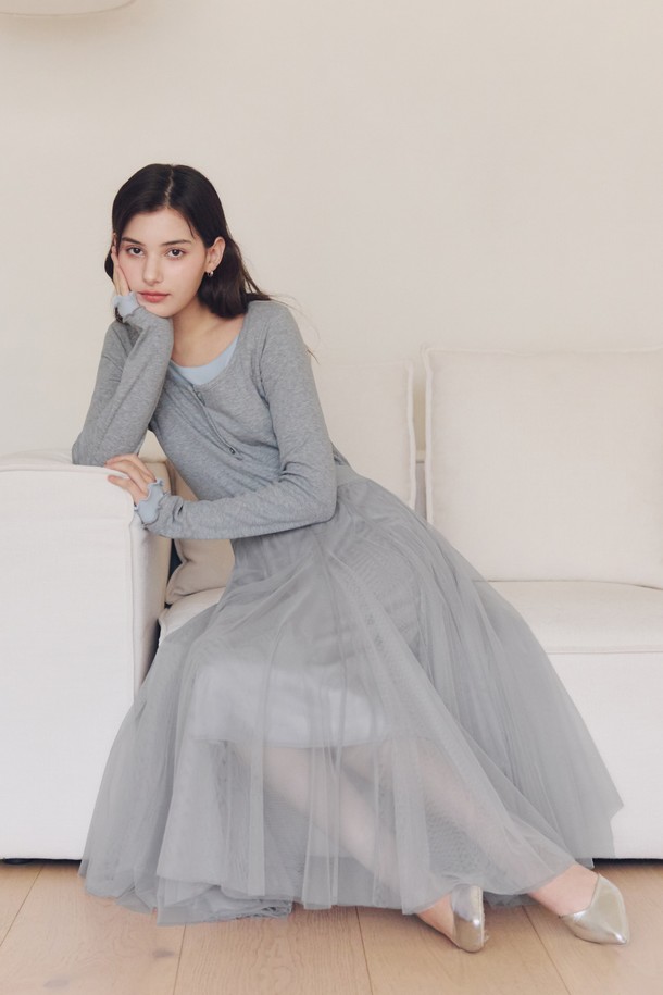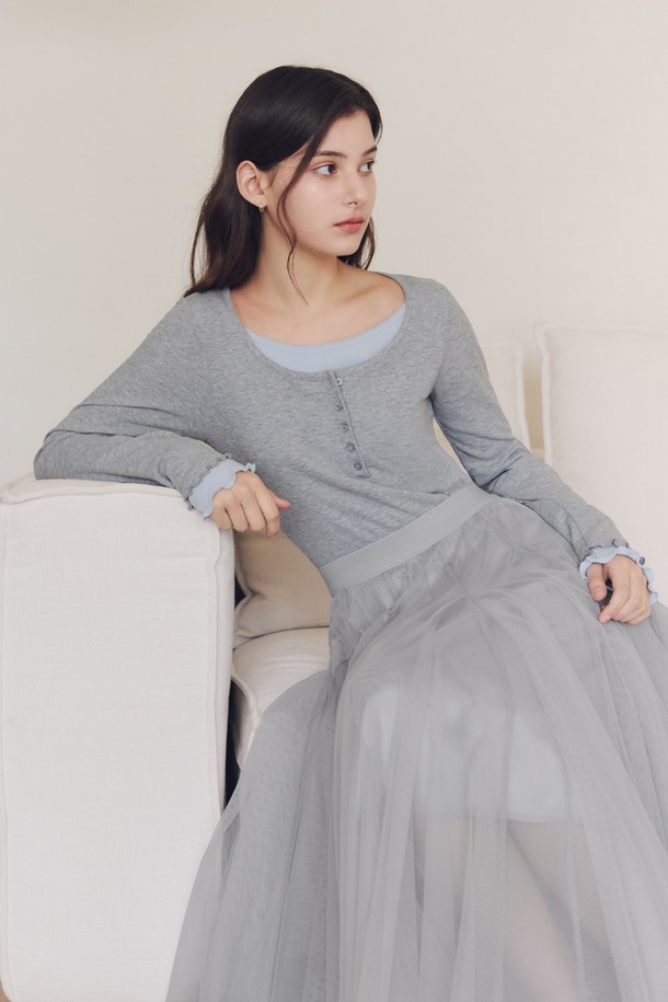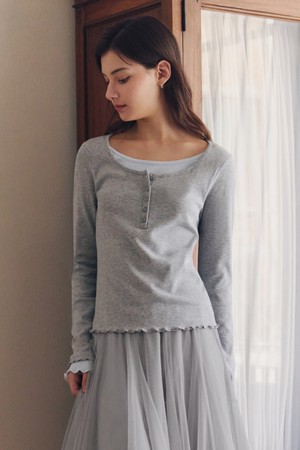 레이어드 헨리넥 티셔츠 / 그레이