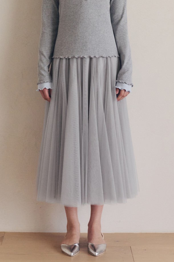 롱 플레어 샤 스커트 / 라이트그레이