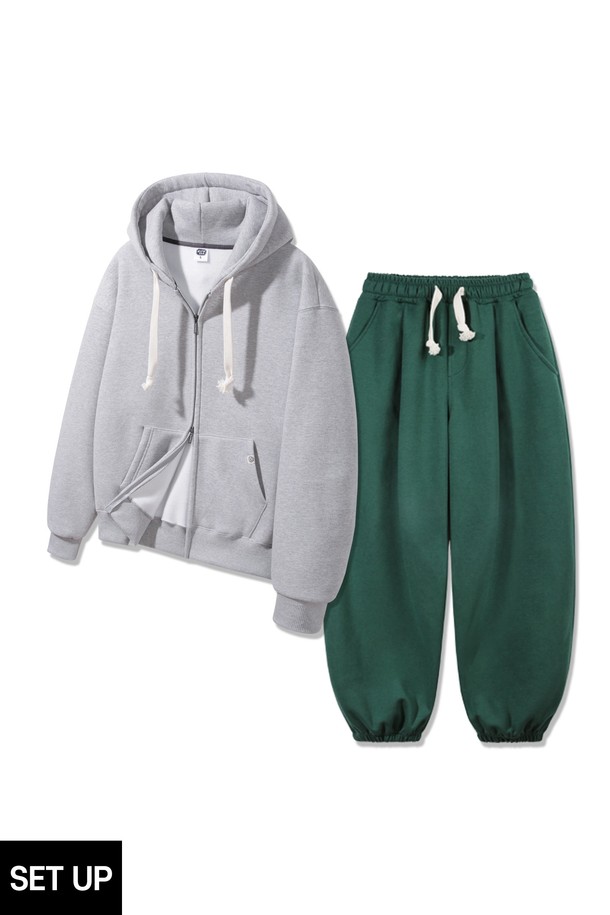 [SET] 무지 오버핏 투웨이 후드집업 원턱 와이드 조거 팬츠 셋업