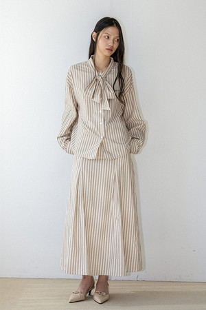 Stripe ribbon shirt and skirt two piece set_IVORY