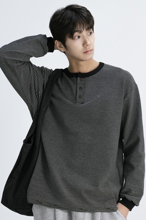 피치 스트라이프 라운드 긴팔티 AVT952 (2COLOR)