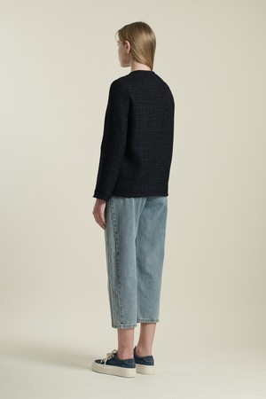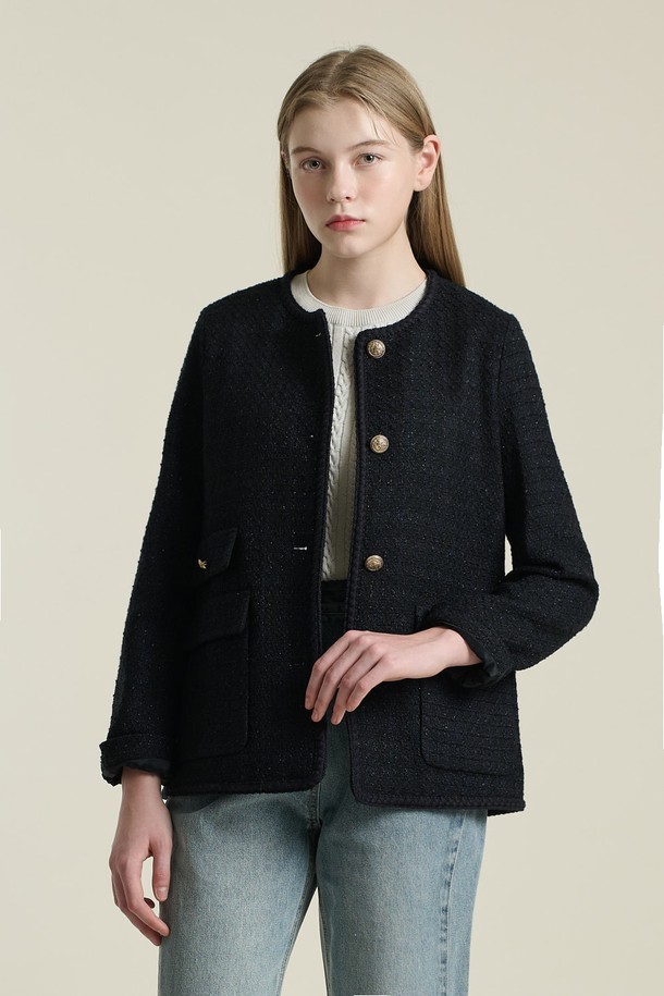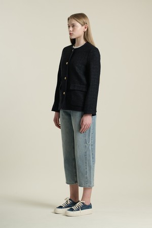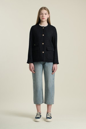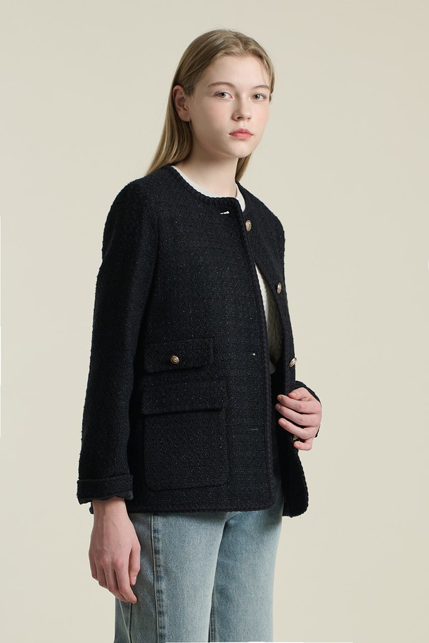 [26SP] 트위드 노카라 자켓 - BLACK B6A1J11099