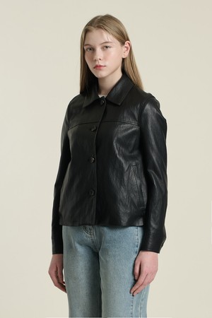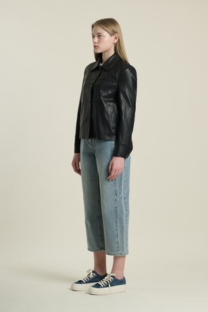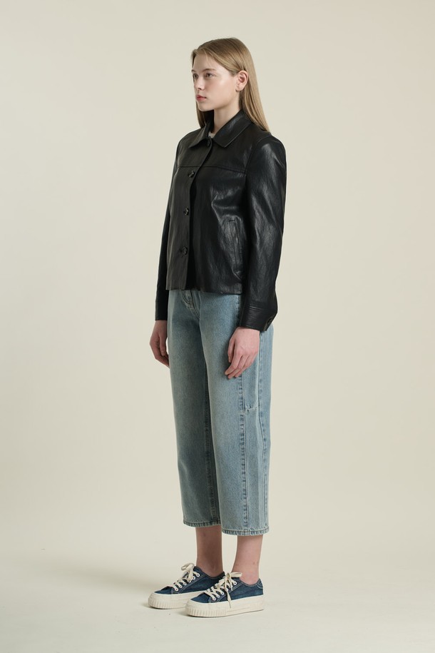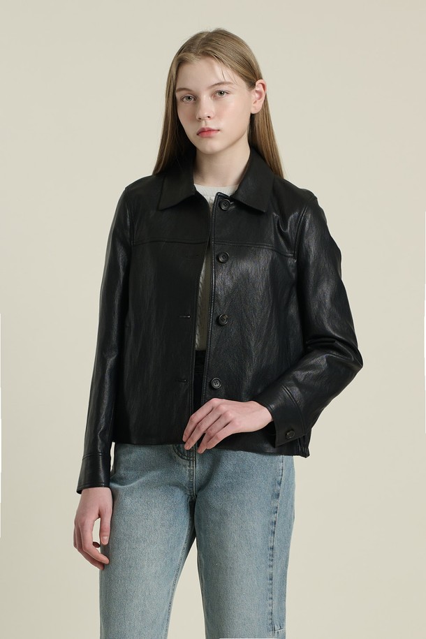 [26SP] 밑단 자수 포우레더 자켓 - BLACK B6A1J10199