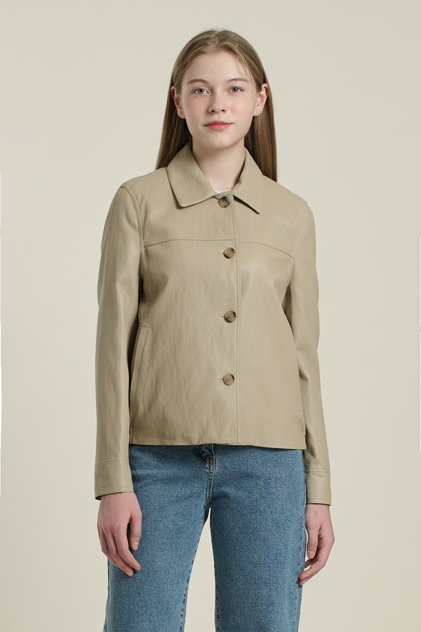 [26SP] 밑단 자수 포우레더 자켓 - LIGHT BEIGE B6A1J10171