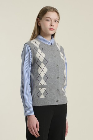 [26SP] 아가일 라운드넥 베스트 - MULTI M GRAY B6A1K50397