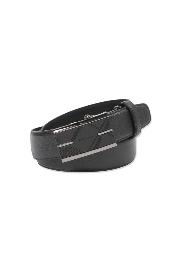 더비엠보 소가죽 빅체크 자동 벨트 블랙