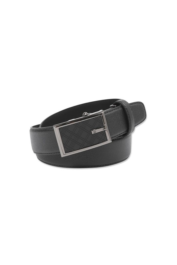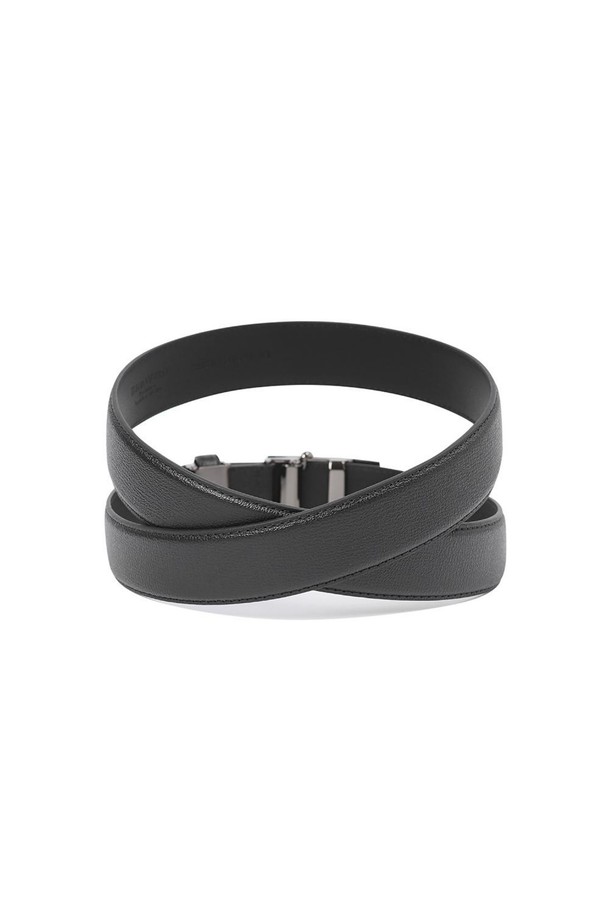 더비엠보 소가죽 흑유광 사선체크 자동벨트 블랙