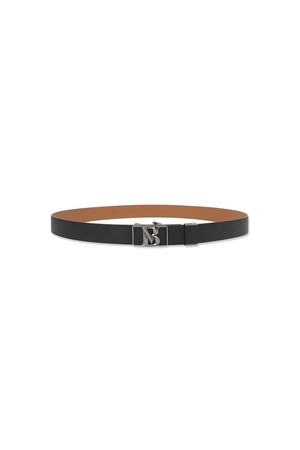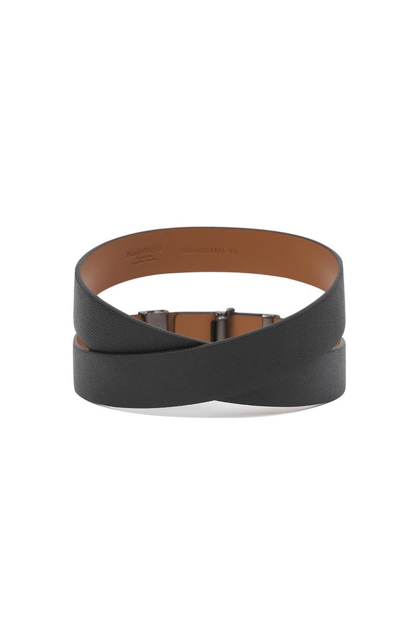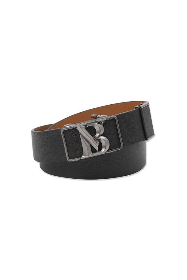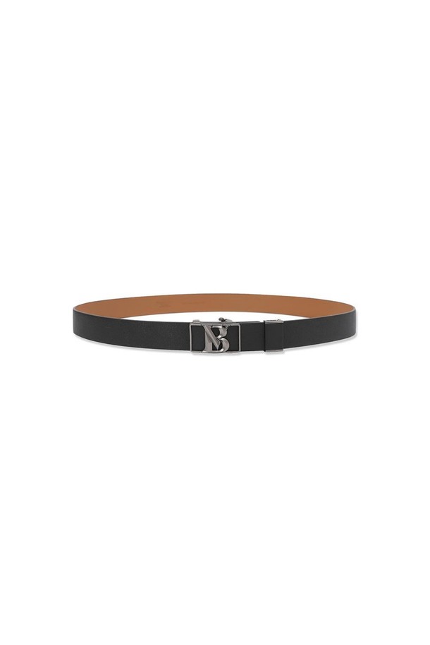 소가죽 흑사틴 로고 자동 벨트 블랙