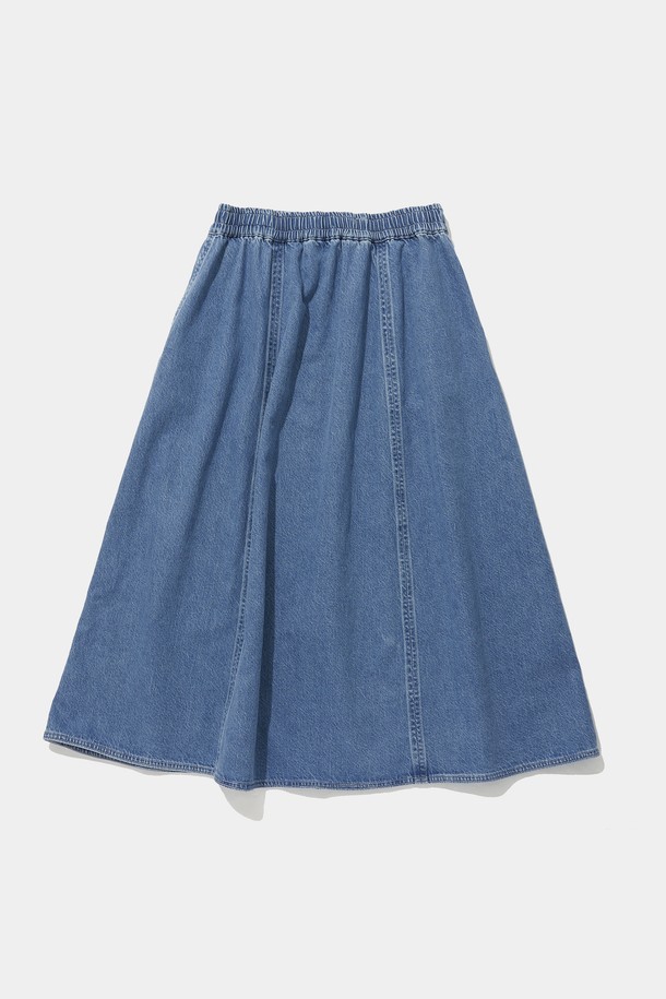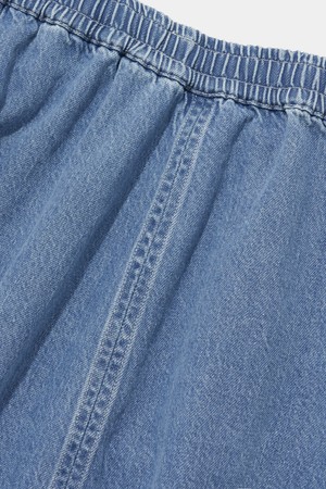 PANEL PLEATED DENIM SKIRT_LIGHT JEAN